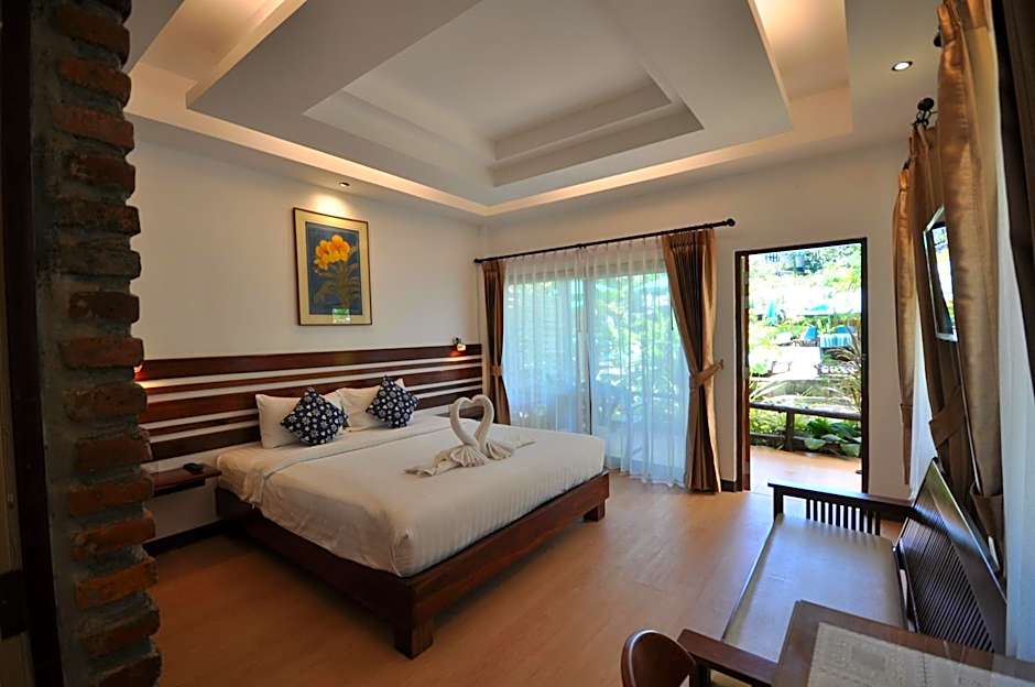Located on the 2nd floor, this triple room offers views of the mountain and pool from its private balcony. The private bathroom includes a rain shower.
