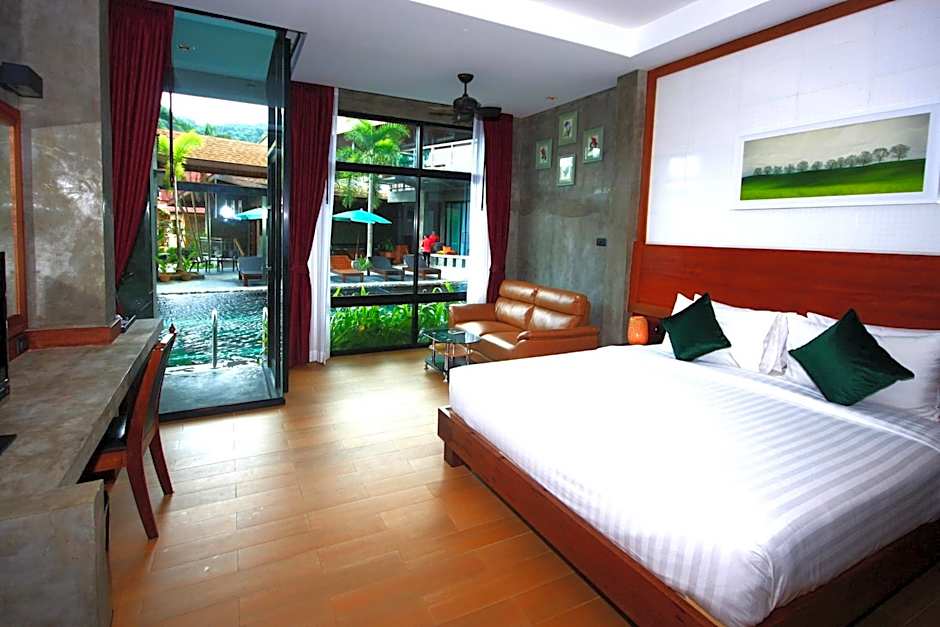 Featuring a direct access to the outdoor pool, this double room is fitted with a cable TV, a sofa and a private bathroom with a shower.